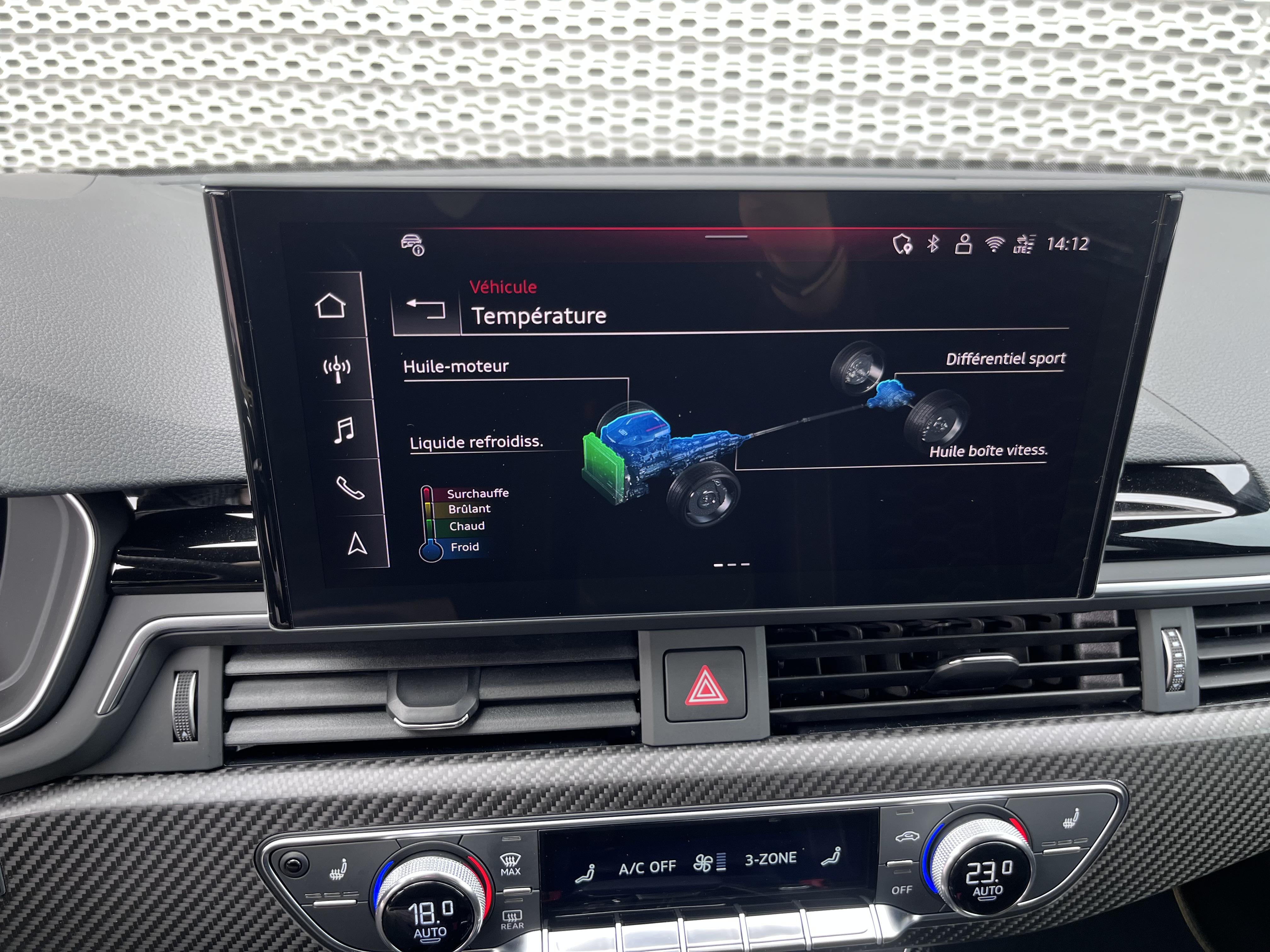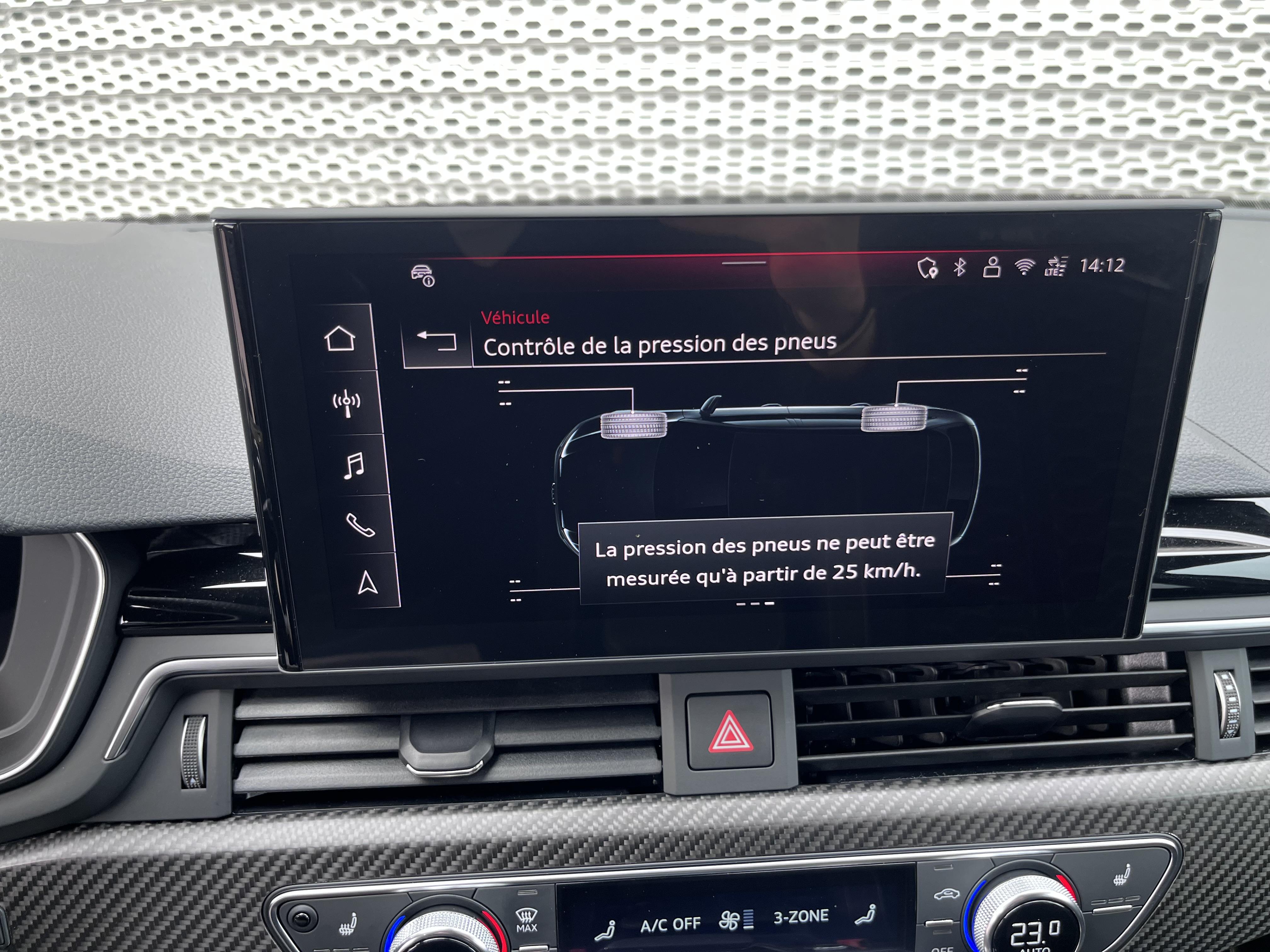 Catégorie : série - Système de contrôle de pression des pneus:les pressions et températures de chaque roue peuvent safficher sur l'Audi virtual cockpit