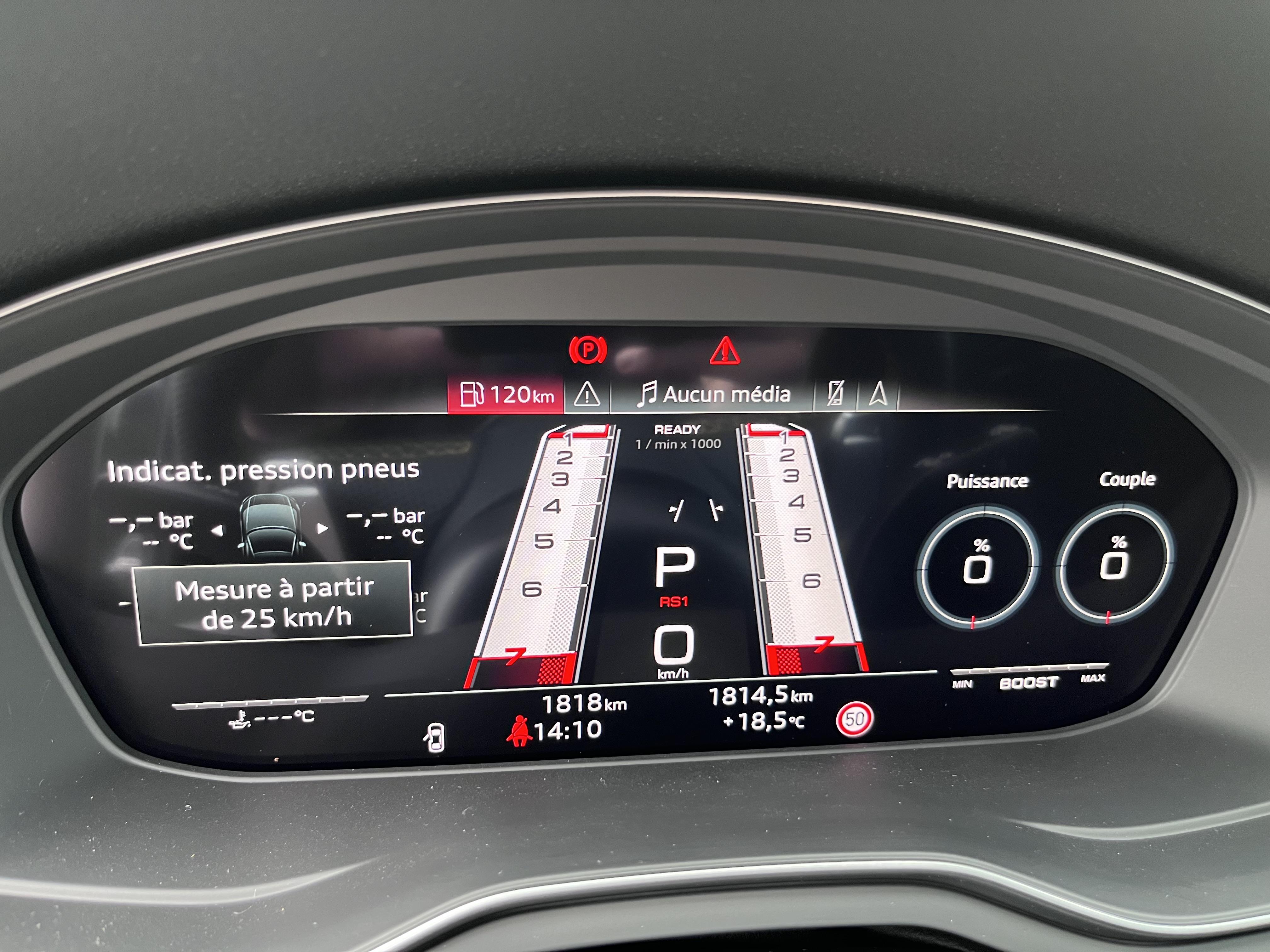 Catégorie : série - Système de contrôle de pression des pneus:les pressions et températures de chaque roue peuvent safficher sur l'Audi virtual cockpit