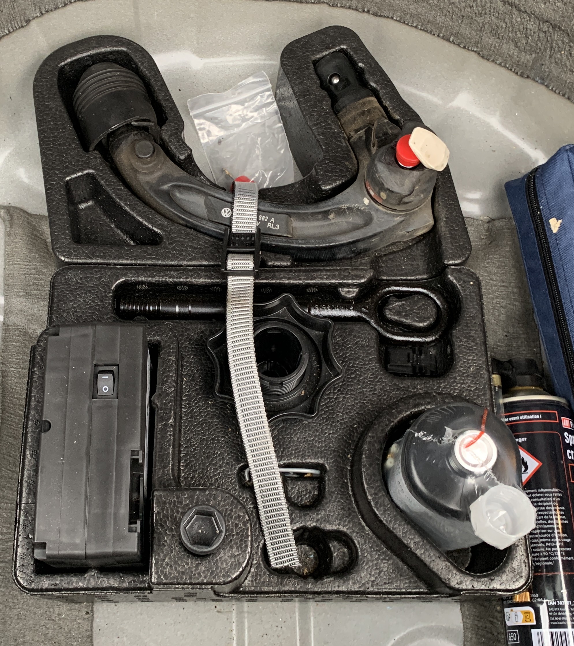 Catégorie : série - Kit de dépannage en cas de crevaison incluant compresseur 12 V et produit colmatant
